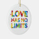 This design features the phrase "Love Has No Limits" formed in colorful rainbow colors.