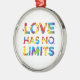 This design features the phrase "Love Has No Limits" formed in colorful rainbow colors.