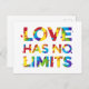 This design features the phrase "Love Has No Limits" formed in colorful rainbow colors.