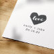 Add hand stamped charm to your envelopes, favors and more with our romantic wedding stamp featuring your names and wedding date displayed beneath a heart illustration with "love" inscribed inside in modern script lettering. Personalize with your names and wedding date using the fields provided, and choose an optional ink pad in a color to coordinate with your wedding details.
