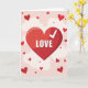 This greeting card shows a large red heart in the center with a shiny look that makes it feel full and bright. Inside the heart, the word “LOVE” appears in white, thick letters, and a small white checkmark sits near the upper right of the heart. The background is blush pink with soft white clouds spread around, giving the scene a light, dreamy setting. Smaller red hearts float outward and upward in different sizes, like the feeling is growing and spreading through the air. The simple shapes and strong red-and-pink color contrast make the message easy to understand at a glance. It feels meaningful to give because it says love is real, chosen, and worth saying out loud 🥰. Whether it’s for a partner or a close friend, it’s a warm way to show you care ❤️.