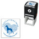 Stamp with dog illustration in a etched style. Blue Ink tone, best for whatever you try to announce