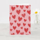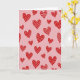 This greeting card shows a blush-pink background covered with many red hearts that look hand-drawn. Each heart has a thin white outline, and inside you can see a few uneven white lines that give it a sweet, casual look. The hearts are scattered all over the front in different sizes, so the layout feels relaxed and full of love. The red hearts stand out clearly against the soft pink, making the whole card feel warm and romantic 💘. There’s no text printed on the front, so the heart pattern is the main focus. The slightly uneven lines make the hearts feel real and friendly, like a simple note from the heart ❤️. Share it with someone special and pass along a little extra love this Valentine’s Day.