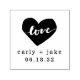 Add hand stamped charm to your envelopes, favors and more with our romantic wedding stamp featuring your names and wedding date displayed beneath a heart illustration with "love" inscribed inside in modern script lettering. Personalize with your names and wedding date using the fields provided.