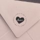 Add sweetly romantic charm to your wedding invitations, thank you cards and correspondence with our love heart return address stamp. Design features a hand drawn heart with "love" inscribed inside, encircled by your names and return address.