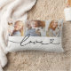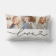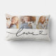 Three of your favorite photos sit above flowing black love script with a heart flourish on a clean white background. This personalized lumbar pillow is perfect for showcasing family memories, couple portraits, kids and pets, or any combination of cherished moments. Upload your own photos to create a meaningful keepsake or gift.