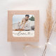 Custom wedding envelope seal / favor stickers feature a favorite photo with minimal white "Love" typography overlay design that includes flourish and heart details. Note, the soft white / light ivory colored background and white text can be customized. A sweet personalized accent for wedding stationery and favors.
