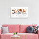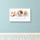 Display your favorite moments on this charming family photo collage canvas print featuring three photos above a flowing calligraphy Love script with a heart flourish and the family name. A white background keeps the design clean and modern, making it a beautiful addition to any gallery wall or living room. All text is fully customizable.