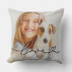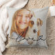 Black calligraphy love script with a heart flourish overlays your favorite photo on this personalized throw pillow. The bold black text is designed to pop against lighter photos, making it versatile for family, pet, or kid portraits. Upload your own photo to create a heartfelt keepsake for any room in the house.