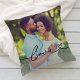 Black calligraphy love script with a heart flourish overlays your favorite photo on this personalized throw pillow. The bold black text works beautifully against any photo — couple portraits, family shots, pet snapshots, or baby keepsakes. Upload your own photo to create a meaningful gift for anniversaries, Valentine's Day, or any occasion that celebrates love.