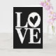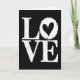 This card shows the word “LOVE” in large white letters set against a deep black background. The letters are arranged in a neat two-by-two layout, and the “O” is replaced by a white heart inside a slightly uneven circle. The word “LOVE” sits right in the center of the front, and the lettering looks like a simple sans‑serif style with strong, straight lines. Up close, the white shapes are dotted with tiny black specks and rough patches, like worn paint or a well-used sign. The edges look a little chipped, and there are faint darker marks inside the circle and near the angles of the “V,” which makes the design feel real and lasting. It’s a meaningful card to give because it says love plainly, without trying too hard, and still feels tender ❤️. Share it to pass along kind Valentine’s Day🥰.