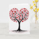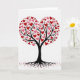 This Valentine’s Day card features a striking black tree silhouette set against a white background. The branches curve upward to form a large heart shape, creating the main focus of the design. Instead of leaves, the heart-shaped canopy is filled with many small hearts in deep red and soft pink. The sturdy trunk leads down to wide, spreading roots, where a few tiny hearts appear to have fallen and settled below. With no text on the front, the artwork speaks for itself. The contrast between black, red, and pink makes the heart shapes stand out clearly, giving the card a calm, meaningful feel that works beautifully for romance, friendship, or simply showing love and connection.