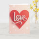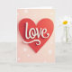 This design shows a large red heart centered on the front, with a soft matte look that makes it feel warm and real. Across the heart, the word “love” appears in smooth, flowing cursive-style letters, colored a creamy ivory. The letters look slightly raised, and a gentle shadow falls underneath them, giving the word a bit of depth. Behind the heart is a blush pink background with faint, out-of-focus light spots that feel like soft glows. The overall scene is calm and tender, like a quiet moment you want to hold onto 🥰. It’s a meaningful card to give because it says what you feel in a simple way, whether it’s for a partner or someone you care about ❤️.