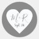 Gray heart of love with couple initials in an elegant script font style and special date... for a stylish wedding invitation