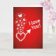 This greeting card features a red background that shifts from a lighter red to a deeper red, giving it a warm, romantic feel. Along the left side, you see a rising flow of small white hearts and white butterflies, mixed with tiny star shapes and curled lines. Some of the hearts are filled in, while others are just outlines, which adds a nice bit of variety. Near the top left, the shapes come together into one large heart made from many smaller hearts. From that large heart, a white arrow made of tiny hearts curves across toward the right side of the card. On the right, the words “I Love You!” appear in white letters that look smooth and slightly rounded, standing out clearly against the red. A soft shadow under the hearts and arrow makes them look slightly raised, and the whole design feels sweet and loving 💘❤️. Hope it helps you share your Valentine’s Day sentiments with someone special.