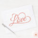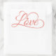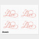 These sweet and simple stickers features the word love printed in a fun pink heart style font highlighted against a crisp white background.