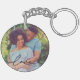 Modern and stylish custom keychain design features a favorite photo with a minimal black "Love" typography overlay design that includes flourish and heart details. The black colored text can be customized.
