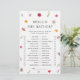 Make your event unforgettable with the Personalized Love in Bloom Bridal Shower Would She Rather Game. Perfect for a love is blooming bridal shower theme or love in bloom bridal shower theme, it complements spring bridal shower themes, garden party bridal shower ideas, and a flower bridal shower theme. Ideal for a bridal shower tea party, tea party bridal shower ideas, or a wildflower bridal shower theme. Fun and stylish for any celebration!