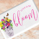Love is in bloom! Vibrant floral wedding collection featuring a bouquet in a marble vase surrounded by butterflies, and accompanied by fuchsia script typography.