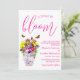 Love is in bloom! Vibrant floral wedding collection featuring a bouquet in a marble vase surrounded by butterflies, and accompanied by fuchsia script typography.