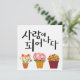 Korean calligraphy reading “사랑이 피어나다” (Love in Bloom) with vibrant potted flowers. A cheerful and inspiring design for gifts, prints, and lifestyle items.