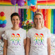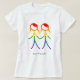 This shirt features a beautiful and elegant design to bring a cohesive and meaningful touch to your wedding celebration. The graphic depicts two women, in the form of elegant stick figures, holding hands. The figures are colored in a beautiful rainbow, symbolizing love and diversity. This shirt is a wonderful way to celebrate your love story with every detail of your special day.