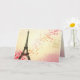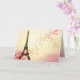 Eiffel Tower against a yellow, tan and pink background with floating hearts and "paris" in gold font. Easily add your own text to this design to customize it. Perfect for the Paris, France travellers, wedding or other special occasion.