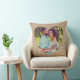 Modern and stylish custom throw pillow design features a favorite photo in a big heart shape with a minimal white "Love" typography overlay design that includes flourish and heart details. The latte tan brown background color can be modified. A unique gift idea for a newlywed couple or for your loved one on Valentine's Day!