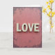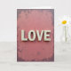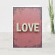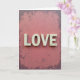 This greeting card centers on the word “LOVE” in large, raised capital letters that look off-white and slightly worn. The letters sit on a muted rose-red background with a rough, grainy surface and scattered dark speckles, especially around the edges. Soft light falls across the card and creates gentle shadows under each letter, making the word feel solid and real. Up close, you can see little marks and uneven texture in the letters, like they’ve been touched over time. The text is placed right in the middle, with a simple, all-caps letter style that’s easy to read and meant to stand out. The overall look feels quiet and sincere, like a reminder that love can last even when things aren’t perfect. It’s meaningful to give because it says what you feel without needing a lot of extra words 🥰❤️.