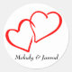 Love is in the air! These cute stickers feature two intertwined red hearts highlighted against a crisp white background. You can personalize the stickers with your name(s) or business name.