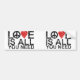 "Love is all you need," with peace sign and heart, distressed age cracked lettering, t-shirts, sweats, cards, buttons, mugs, gifts.