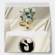 Love is All there is silhouette embrace design with black on a gold silk and white roses makes for a strong personalized wedding stationary