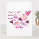 These are hand-drawn hearts in pink, burgundy and Peach Fuzz. A Burgundy heart in interior of card, and customizable text on top, and name at the bottom.