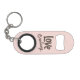 Pop open the fun with this adorable beer keychain bottle opener! Featuring a vibrant pink design with the charming message 'love is brewing' on the front, and customizable details for the bride-to-be's bachelorette party on the back, this handy accessory is both practical and stylish. Add a touch of girly flair to the festivities and make every toast memorable with this delightful keychain!