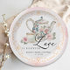 Serve up charm with this elegant “Love is Brewing” bridal shower paper plate! Featuring a vintage floral teapot, teacup, blush roses, and gold scroll detailing, this soft watercolor design makes a lovely addition to your tea party table. Personalized with the bride’s name and shower date, it’s the perfect blend of beauty and function for a stylish celebration.