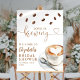 This stylish bridal shower welcome sign features coffee beans and a cup of coffee, along with elegant typography that can be personalized with your name and special date. Designed by Thisisnotme©