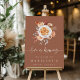 Fall in love with this romantic design for autumn bridal shower brunches or coffee themed showers. Elegant design features a warm terracotta background graced with a bouquet of pastel earth tone boho watercolor flowers flanking a perfectly prepared caffe latte. Personalize this bridal shower welcome sign with your custom text beneath "love is brewing" in sketched cursive lettering.