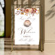 Love is brewing coffee fall bridal shower welcome sign poster editable template instant digital download cappuccino coffee cup brown roses fall flowers elegant calligraphy bridal shower personalized entrance decor welcome sign