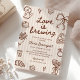 Celebrate the bride to be with this Love is Brewing Coffee Hand Drawn Bridal Shower Invitation. Featuring playful doodles of coffee cups, beans, croissants, bows, and hearts, this cozy cafe inspired theme adds a warm and whimsical touch to your bridal celebration. Perfect for a chic coffee themed shower or bridal brunch, this editable invitation is a stylish way to honor the future Mrs.