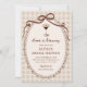 Celebrate the bride to be with this Love is Brewing Espresso Martini Bridal Shower Invitation. Designed with a chic watercolor espresso martini, coffee beans, a vintage hand drawn bow frame, and beige gingham background, this cafe inspired theme adds cozy charm to your celebration. Perfect for a fall bridal shower or a rustic coffee themed bridal brunch, this whimsical template is easy to personalize.