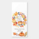 Love is brewing fall themed bridal shower thank you favors personalized mini chocolates, watercolor fall leaves and berries wreath and pumpkin cup of tea for autumn themed tea party bridal shower edible candy favors