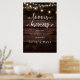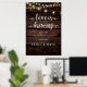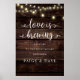 Love is Brewing, Modern Rustic, Wedding Rehearsal Dinner Welcome Poster, in rustic brown wooden background, cottage string lights themed.