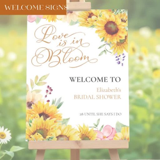 The "Love Is In Bloom | Sunflower Watercolor Floral Bridal Shower Welcome Sign" is a beautifully crafted welcome sign that is perfect for a bridal shower. It showcases a delightful sunflower watercolor floral design, creating a romantic and festive atmosphere, designed by CaMiDesigns. For orders, shipping, product information, and additional assistance, please contact Zazzle Customer Care directly.