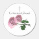 Design features two pink roses intertwined below names of bride and groom. A delicate silver-colored cross appears above. Designed to coordinate with the "Love is in Bloom Wedding Suite."