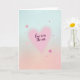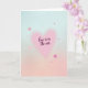 This very cute greeting card shows a soft background that fades from light sky blue at the top to gentle pink at the bottom, like a calm early evening. In the middle, there’s a large pastel pink heart with slightly blurred edges that makes it feel warm and dreamy. Inside that heart, the words “love is in the air” appear in deep plum cursive, centered and easy to spot. Around the main heart, several smaller hearts in brighter pink are scattered across the card, as if they’re floating. The little hearts vary in size and help fill the space without taking attention away from the main message. Overall, the design feels sweet and romantic, with a calm, friendly mood that fits Valentine’s Day well. Add it to a gift or a note for someone special and let it say what you feel 💕❤️.