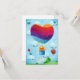 Fantasy landscape with balloon heart shaped and cat, valentine card.