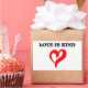 " LOVE IS KIND " RED HEART WITH BLACK TEXT LETTERING