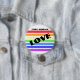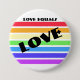 This "Love equals LOVE" pin back button proudly proclaims Love in bold black text across bright rainbow stripes. Love is Love and unconditional.