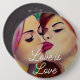 Pride art. Two girls Kissing watercolor digital art. LGBTQ love button.