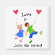 Square magnet with a handpainted paper collage motif of 'Love is...being silly together!'